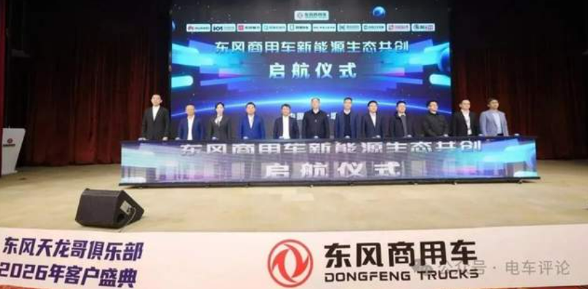 东风商用车新能源的朋友圈越来越广了,而且都是大咖。就在近日的“东风天龙哥俱乐部2026年客户盛典”天龙哥之夜期间,东风商用车新能源生态共创正式启航。
