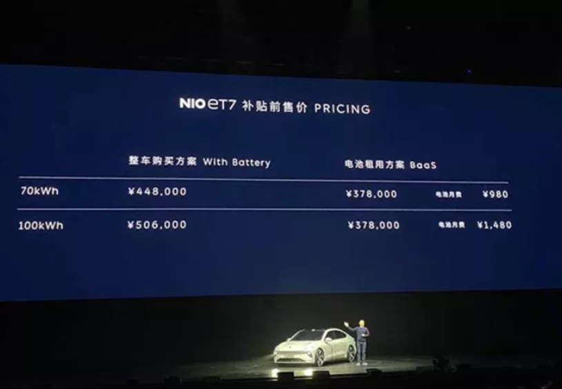 早在今年1月份,蔚来 ET7在成都举办的 NIO Day正式发布并开启预售,新车定位为纯电动中大型轿车,共推出3款配置车型,售价区间为44.8-52.6万元。续航方面,新车分别搭载了70kWh、100kWh和150kWh的电池包,综合工况续航500公里、700公里和1000公里。