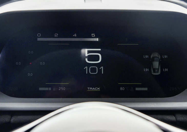 外观上,这款跑车采用了纯电动超跑Evija的设计语言,新车线条简单,并且设计非常干脆,整车的造型非常具有雕塑感。新车下保险杠的进气结构也有着降低阻力的作用,并且引擎盖上左右两个折线设计,都采用了非常科学的空气动力学套件。