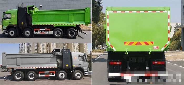大运推出的换电式纯电动自卸汽车,产品型号为CGC3310BEV1Z2,搭载了由大运生产的CGC3310EV1Z2底盘;整车采用8×4后自卸式设计,车身长、宽、高尺寸为9590(9790)mm×2500(2550)mm×3500mm,总质量为31000kg、额定载重质量为12570(12505)kg、整备质量为18300kg;该车搭载的是大运N8V驾驶室,可选装平顶驾驶室;配套了由科密生产的ABS制动防抱死系统,行车更加安全。