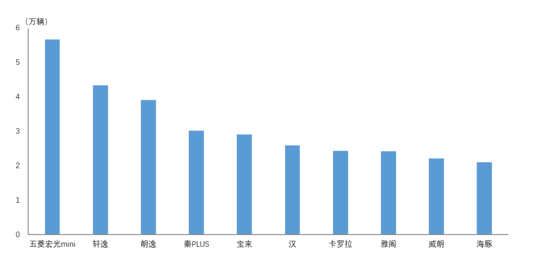 据中国汽车工业协会统计分析,2022年7月,销量排名前十位的轿车品牌依次为五菱宏光mini、轩逸、朗逸、秦PLUS、宝来、汉、卡罗拉、雅阁、威朗和海豚。
