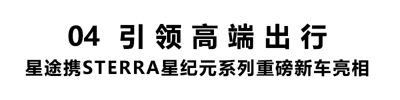 在上海车展,星途携星纪元STERRA系列重磅新车STERRA ES、STERRA ET,以及瑶光C-DM、揽月REEV等多款超人气产品,彰显星途发力新能源市场、实现品牌高端进阶的决心与实力。