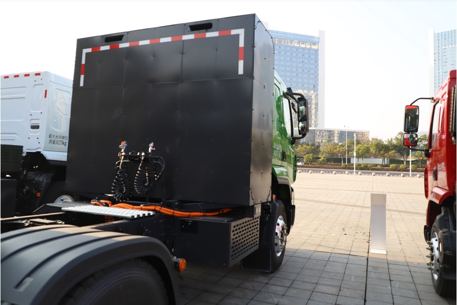 乘龙H5纯电牵引车搭载国轩高科646度超大电量电池,该电池采用了全新的磷酸铁锂技术,整体能量密度得到提升,续航里程高达400公里,精准覆盖中长途运输需求,适用于港口、矿山、城际物流等多种场景。同时,该车支持四枪快充,20%-80%充电时间小于1小时,大幅提升运营效率,减少等待时间。
