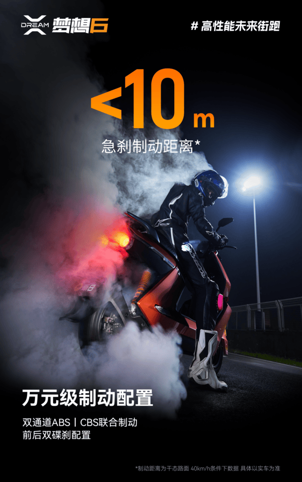 新日梦想6以万元级安全配置,为你打造全场景防护,让每次出发都安心从容。想象一下,当你载着朋友雨天回家,路口突然有车冲出,你下意识紧急刹车——此刻新日梦想6的刹车系统即刻协同工作:前265mm与后220mm的大尺寸双碟刹提供强劲且线性的制动力,而CBS联动刹车能智能分配前后轮刹车力度,避免车身因单边急刹而失衡甩尾;更重要的是,双通道ABS防抱死系统会高频介入,在湿滑路面上精准防止轮胎锁死———整个过程没有刺耳摩擦与车身摆动,只有一股沉稳可控的力量让车辆稳稳停住,把一场可能的惊险化为一次从容的应对。