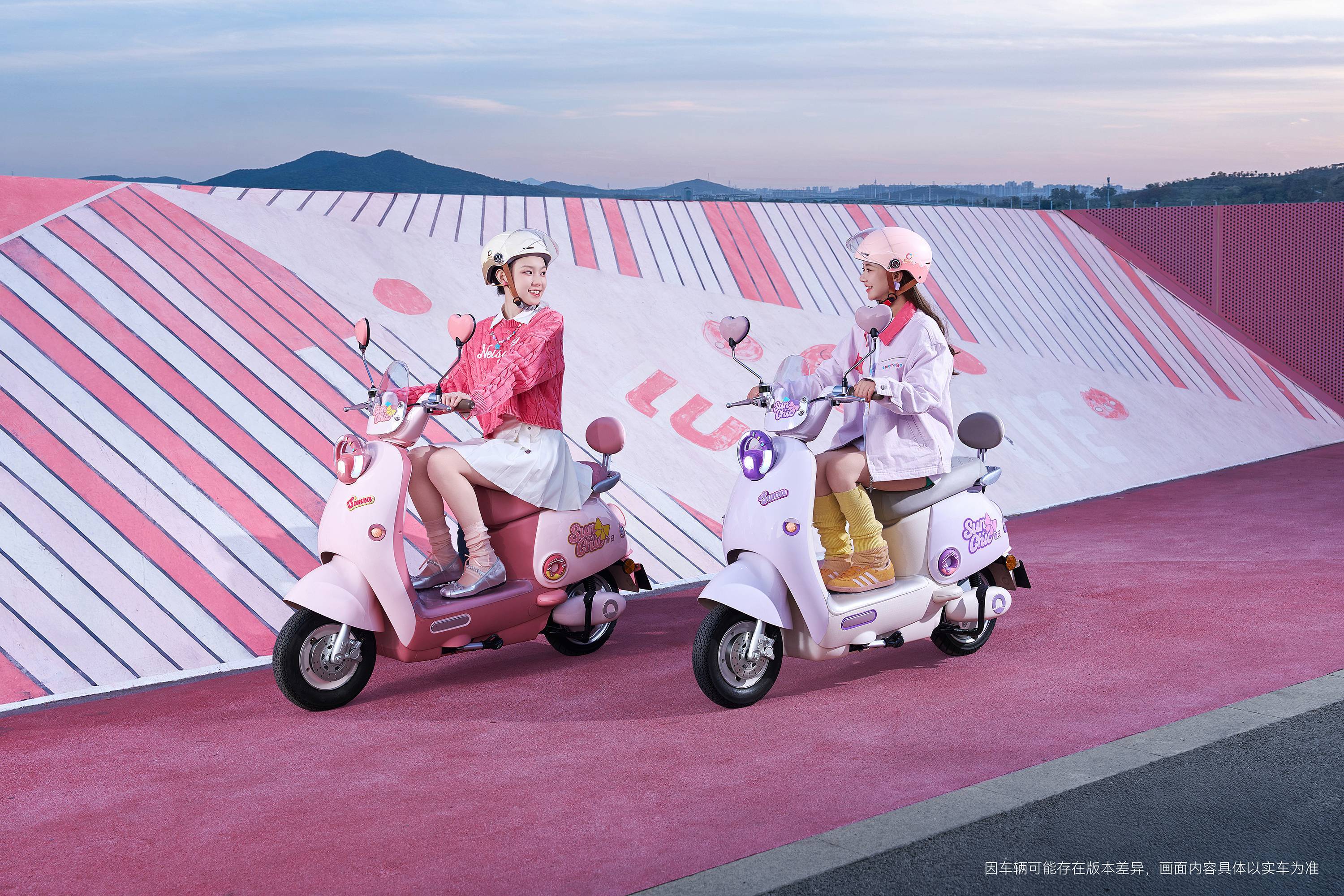 细节之处,更见甜系巧思:甜甜圈造型环形大灯,搭配爱心后视镜,日夜皆自带高光。无论是骑行于梧桐摇曳的街头,停在咖啡馆前随手一拍,还是穿梭于文艺巷弄与网红地标,它都是你最上镜的时尚伴侣。